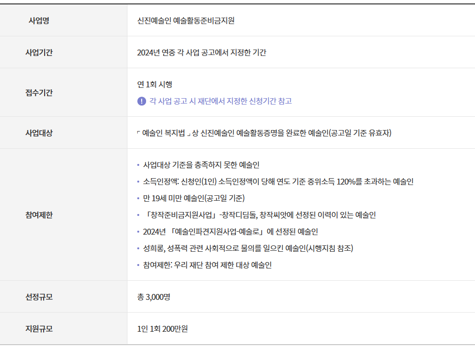 예술활동준비금지원사업은 신진예술인 예술활동준비금지원사업과 일반 예술활동준비금지원사업으로 구분되어 진행되는데 아래에서 각 사업의 내용과 신청자격 및 신청방법 등에 대해 살펴보도록 하겠습니다.